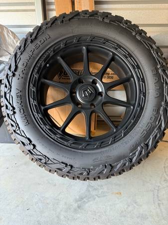 20x9 TIS 563 wheels with zero offset and 295/55/20 Mickey Thompson Baja Boss A/T Tires. Just bought them in December for $3260.