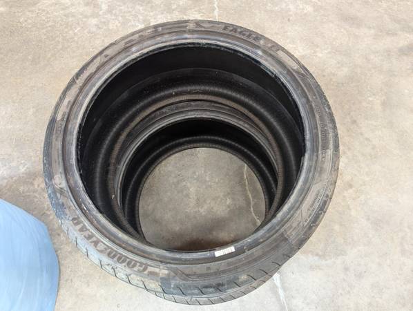 One pair of Goodyear Eagle F1 tyres Size is 305/30/21. No repairs, bought them as replacement's for my Porsche 911 but never needed them and now sold the car. Please see all pictures. $110 for the...